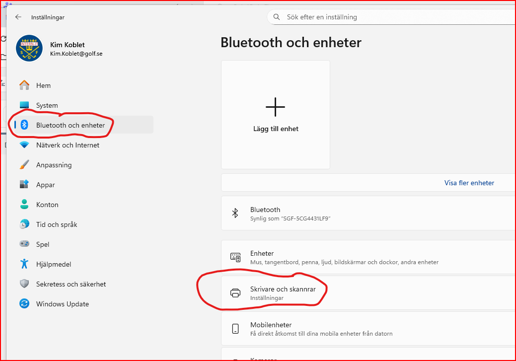 - Välj BLUETOOTH OCH ENHETER (se bild 1 nedan)